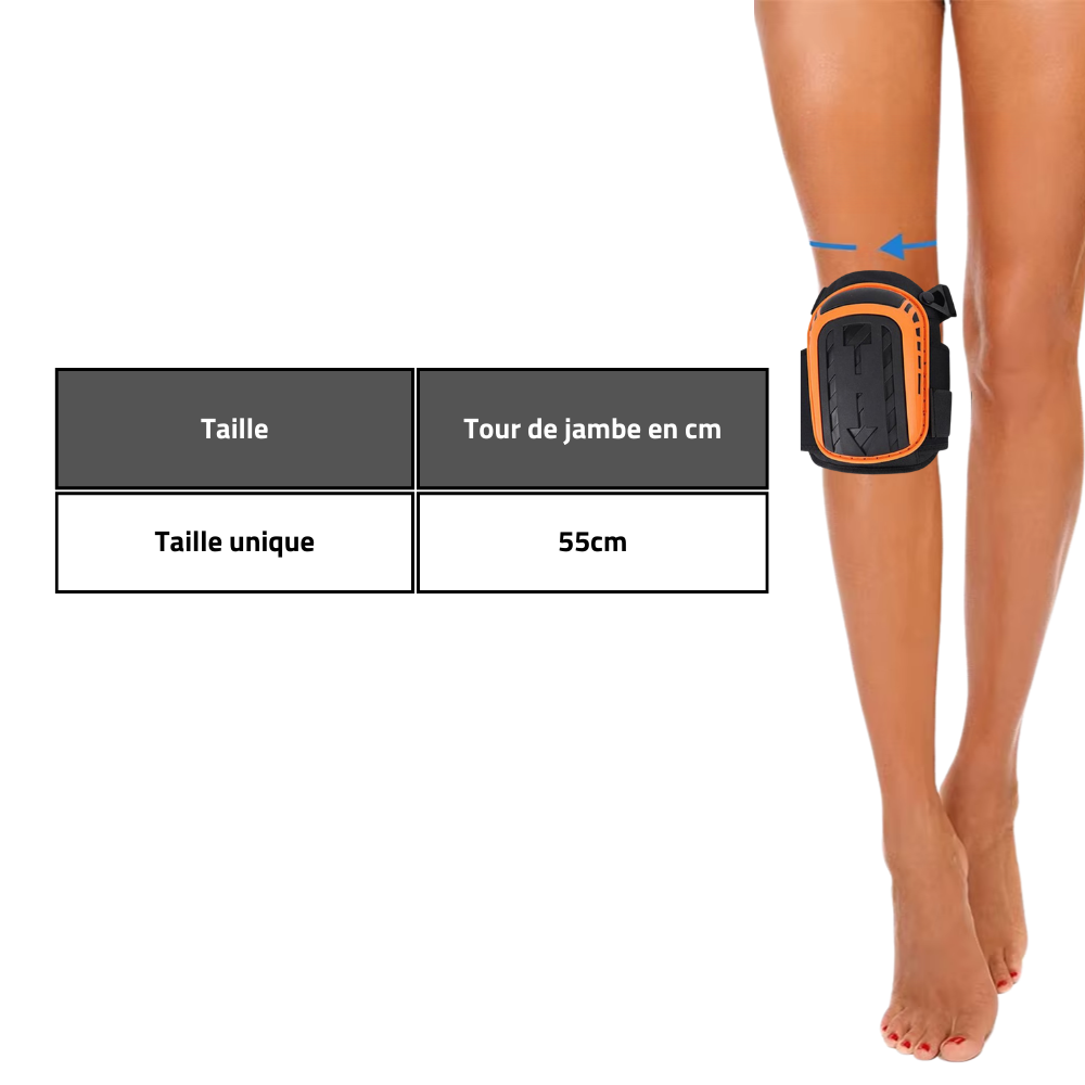 Absolument. Grâce à son système de fixation par bandes auto-agrippantes, la genouillère s’adapte facilement à différentes tailles de jambes et reste bien en place pendant les mouvements.