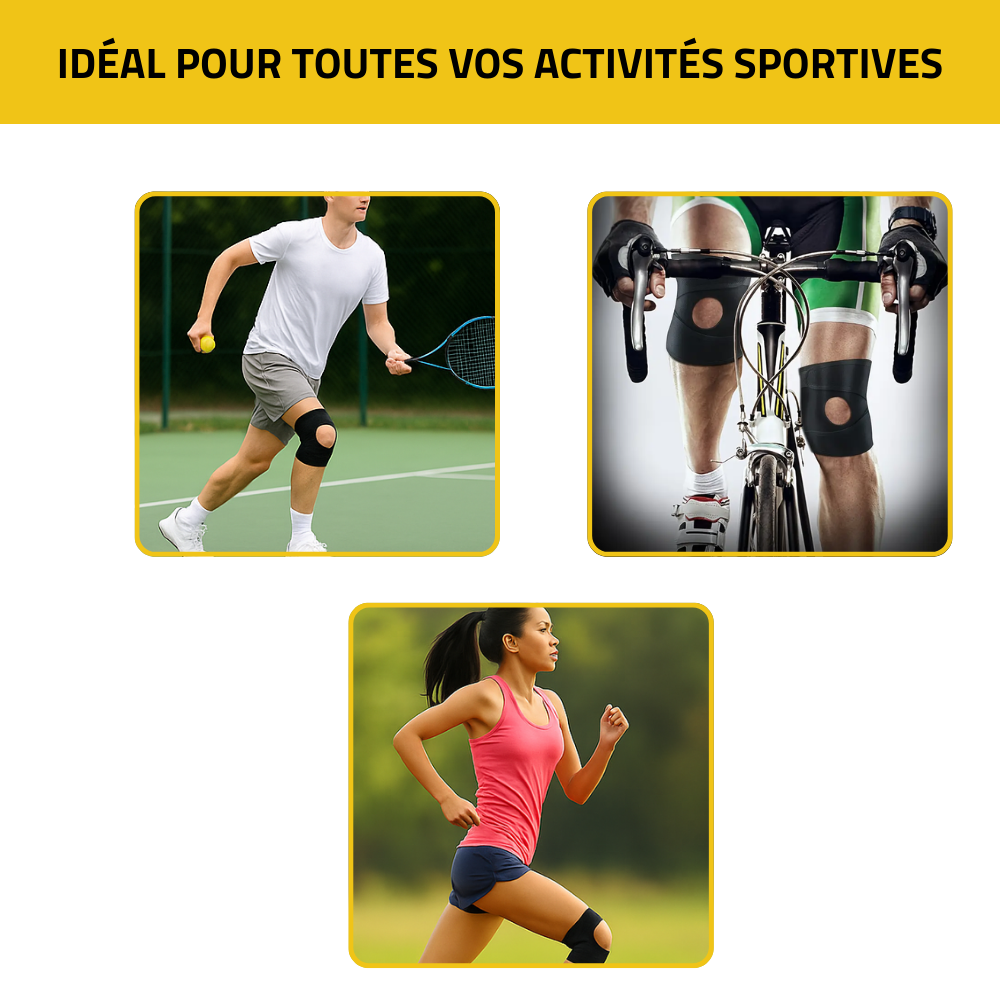 "J’avais souvent mal au genou après mes courses, mais avec cette genouillère la différence est incroyable. Elle tient bien, ne glisse pas et je peux courir sans gêne. Excellent produit !"