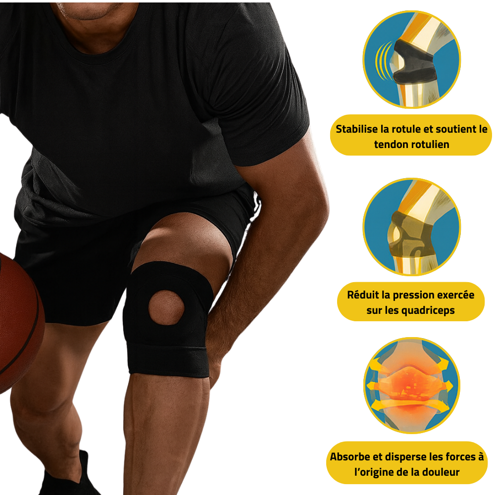 La Genouillère Rotulienne de Soutien , diminue la pression sur l’articulation et aide à limiter les douleurs liées aux efforts répétés.