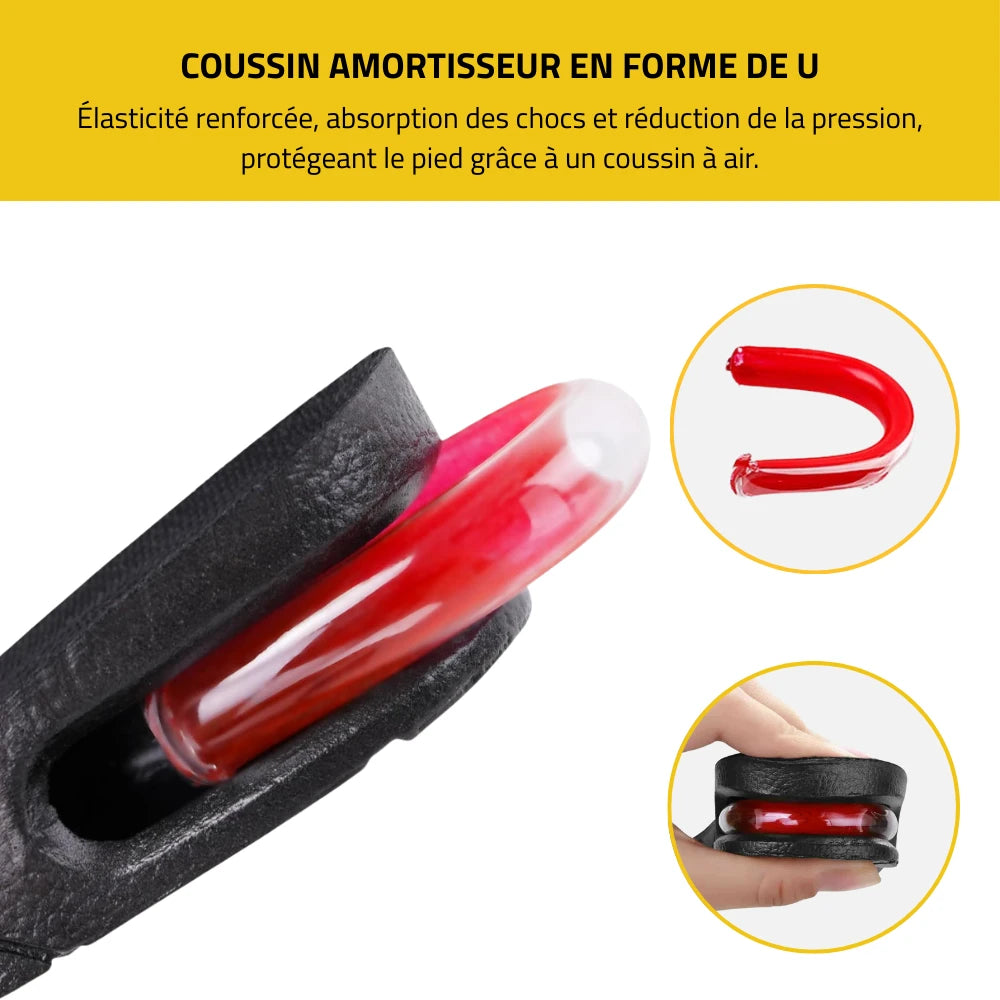 Un système d’absorption innovant en coussin d’air en forme de U conçu pour protéger vos pieds et optimiser le confort à chaque pas.