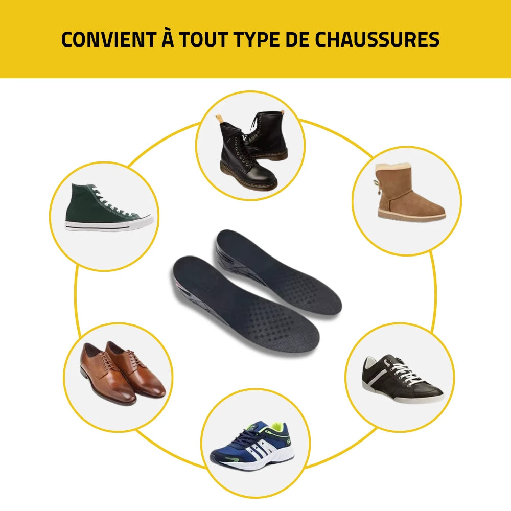 Oui, les semelles ElevateSTEP® sont conçues pour s’adapter à la plupart des chaussures : baskets, chaussures de ville, bottes et même certaines sandales.